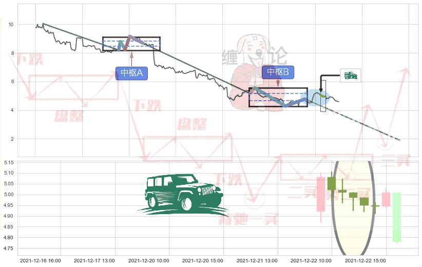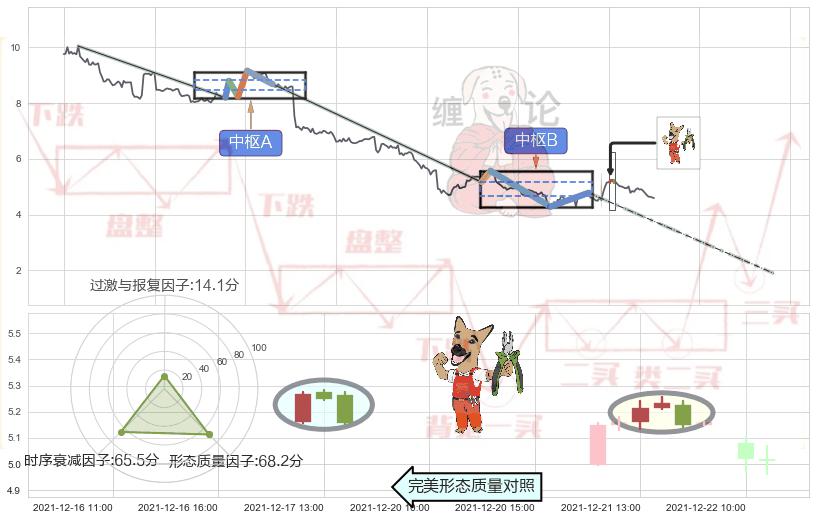 从2021-07-28 14:00至2021-12-21 13:00,共包含677个小时,阶段股价下跌-68.21%,阶段股价变动位移路程比: 1 : 11,下跌趋势角度: 38.7