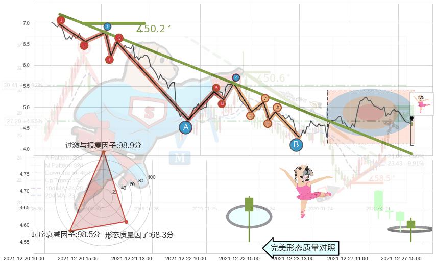 从2021-11-19 14:00至2021-12-15 11:00,共包含122个小时,阶段股价下跌-45.81%,阶段股价变动位移路程比: 1 : 3,下跌趋势角度: 50.2