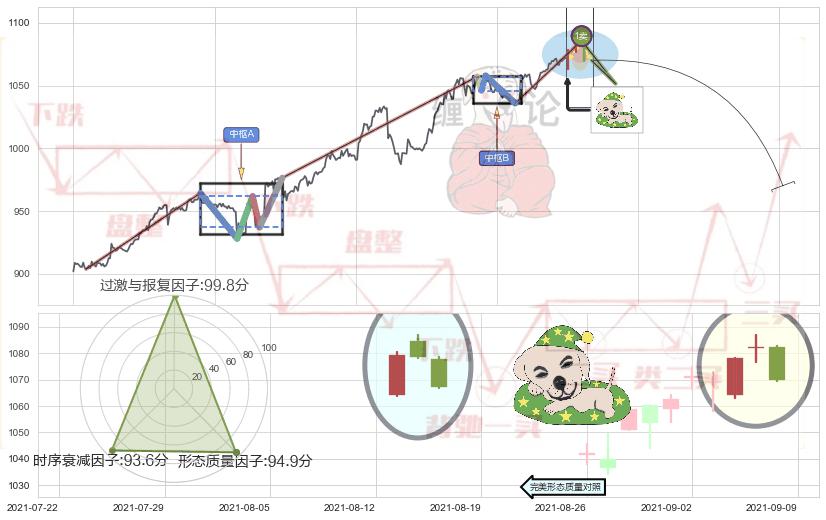 ➢ 🕰 价格走势在2021-09-07 00:00:00至2021-09-09 00:00:00期间形成黄昏之星(夜星),残存影响值:-3.57