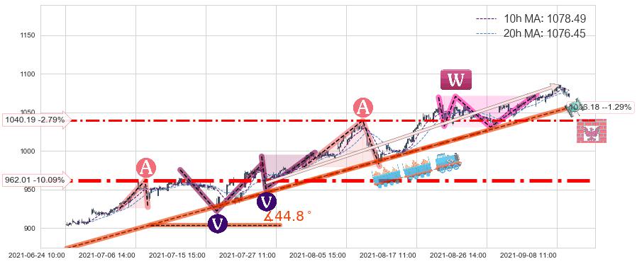 ♘ 支撑价格位1040.19,可信任强度64.32%,距离最后交易2021-09-09 14:00形成的收盘价格1070.01相差 -2.79%