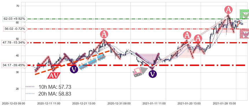 ♘ 阻力价格位62.03,可信任强度54.09%,距离最后交易2021-01-28 16:00形成的收盘价格56.43相差 +9.92%