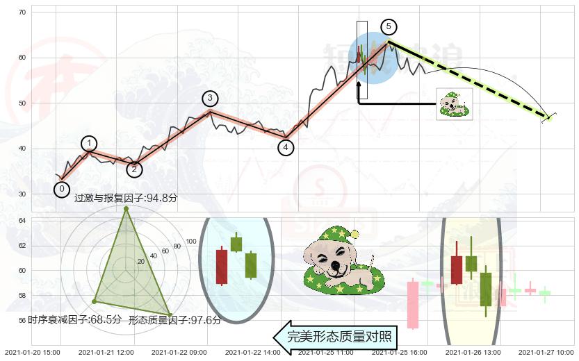 ➢ 🕰 价格走势在2021-01-27 12:00:00至2021-01-27 13:00:00期间形成射击之星形态,残存影响值:-5.99