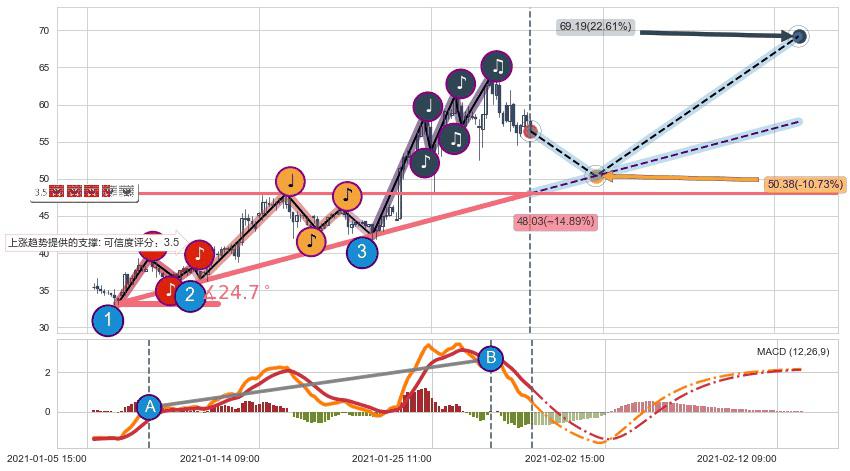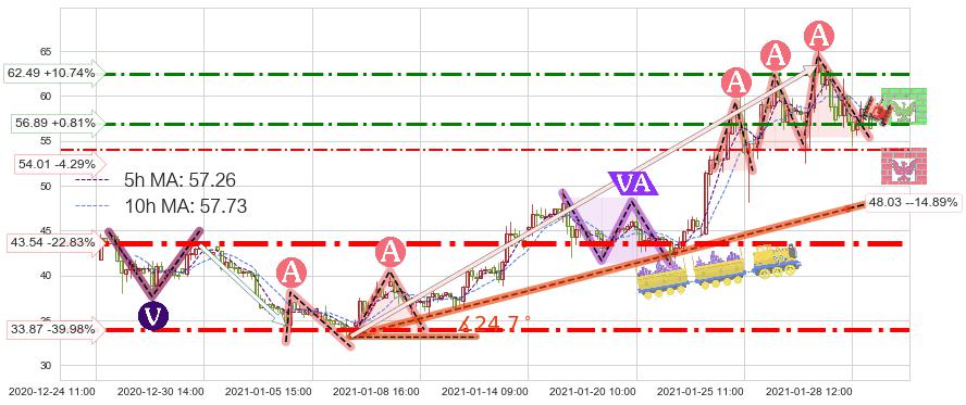 ♘ 阻力价格位62.49,可信任强度60.35%,距离最后交易2021-01-28 16:00形成的收盘价格56.43相差 +10.74%