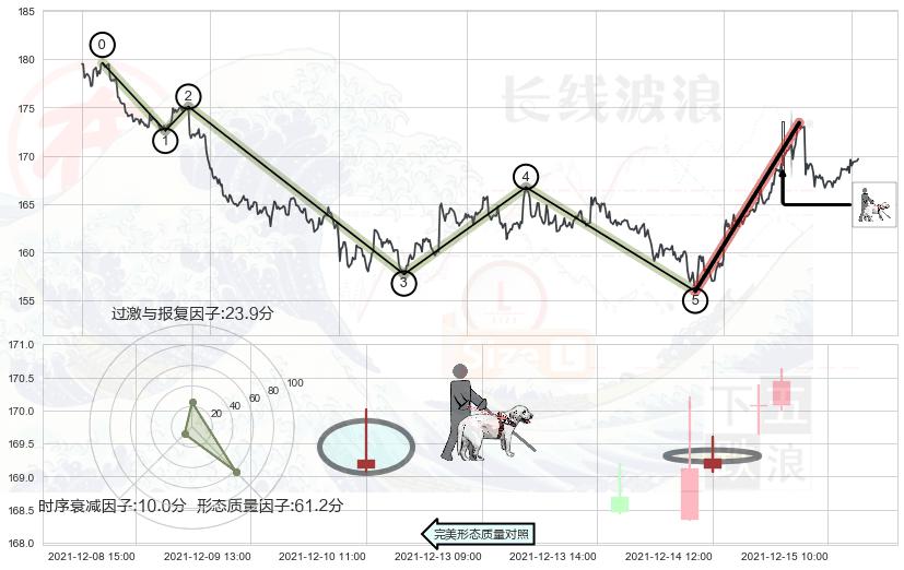 ➢ 🕰 价格走势在2021-12-14 14:00:00至2021-12-15 11:00:00期间形成低档五阳线,残存影响值:1.57