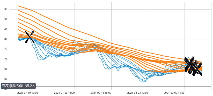 📉 多条均线基于【死叉历史模型】预测最低波谷价格的平均值: 56.38