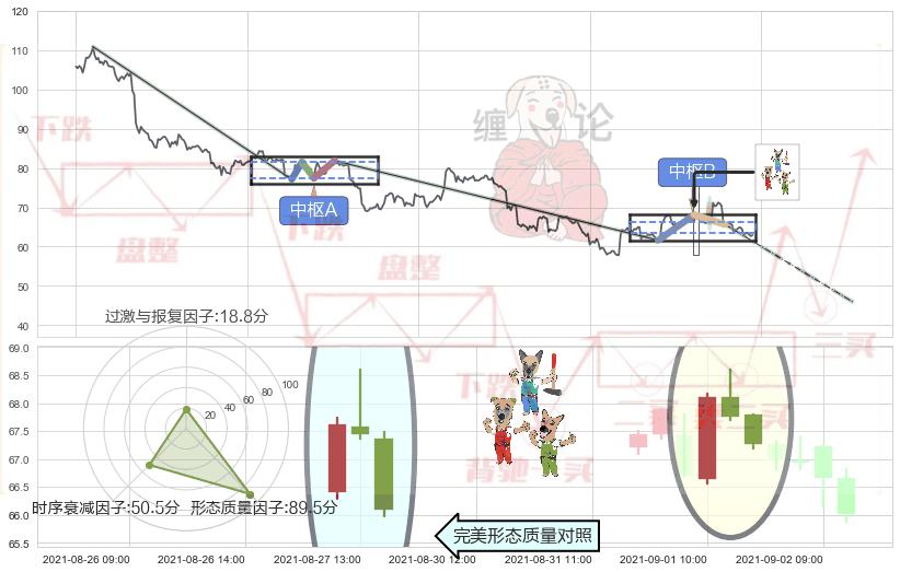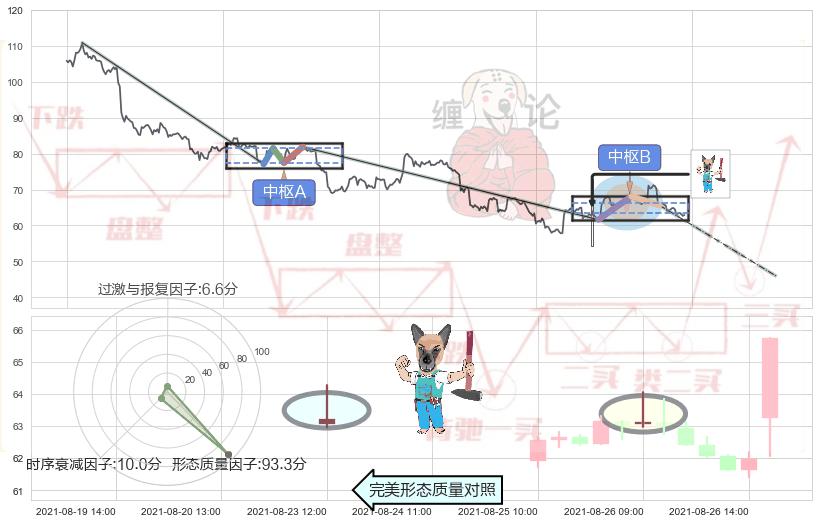 ➣ 下跌镊子线(n形磁铁) + 缠论中枢点破位中枢B支撑下拉信号叠加后【目标达成率】极高,【看空】信号叠加【存续影响极小】