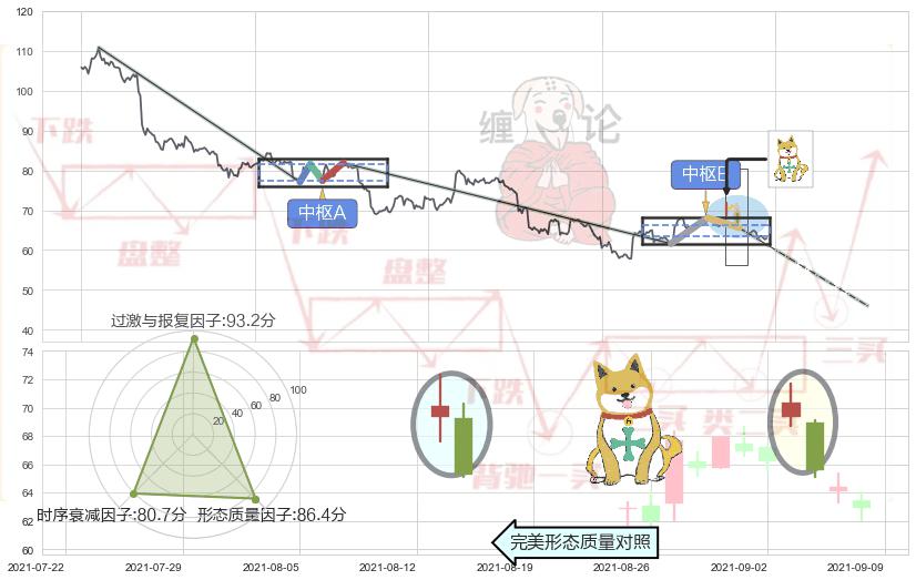从2021-06-02 12:00至2021-08-27 12:00,共包含374个小时,阶段股价下跌-48.95%,阶段股价变动位移路程比: 1 : 7,下跌趋势角度: 46.5