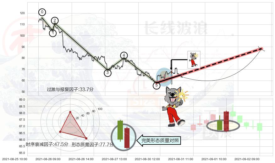 ➣ 曙光初现形态 + 波浪理论下跌浪:浪5反弹拐点信号叠加后【反向回撤率】偏高,【看多】信号叠加【存续影响降权】