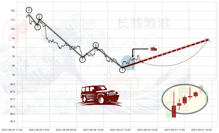➢ 🕰 价格走势在2021-08-31 09:00:00至2021-08-31 13:00:00期间形成低档五阳线,残存影响值:3.38