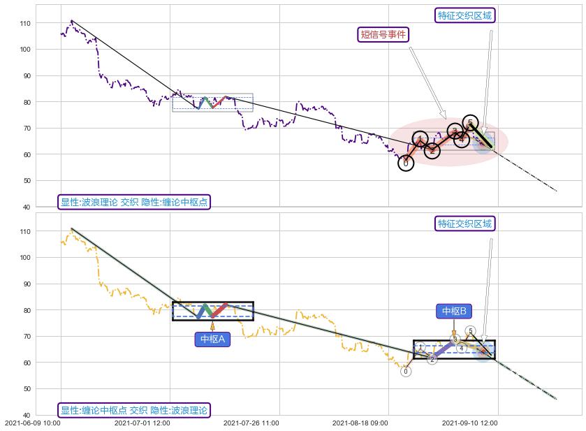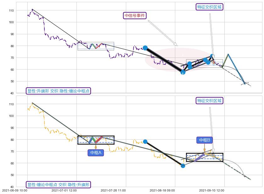 ➣ 缠论中枢点:猜想破位中枢B后持续下拉 → 下跌 → 破位中枢B支撑 → 持续趋势跟踪