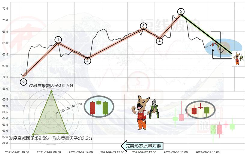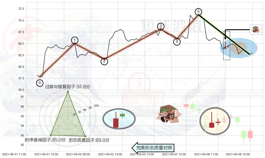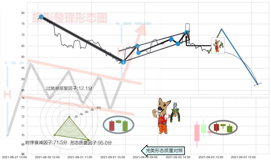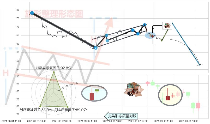 ➢ 🕰 价格走势在2021-09-08 10:00:00至2021-09-08 11:00:00期间形成顶部尽头线(下山虎),残存影响值:-7.07