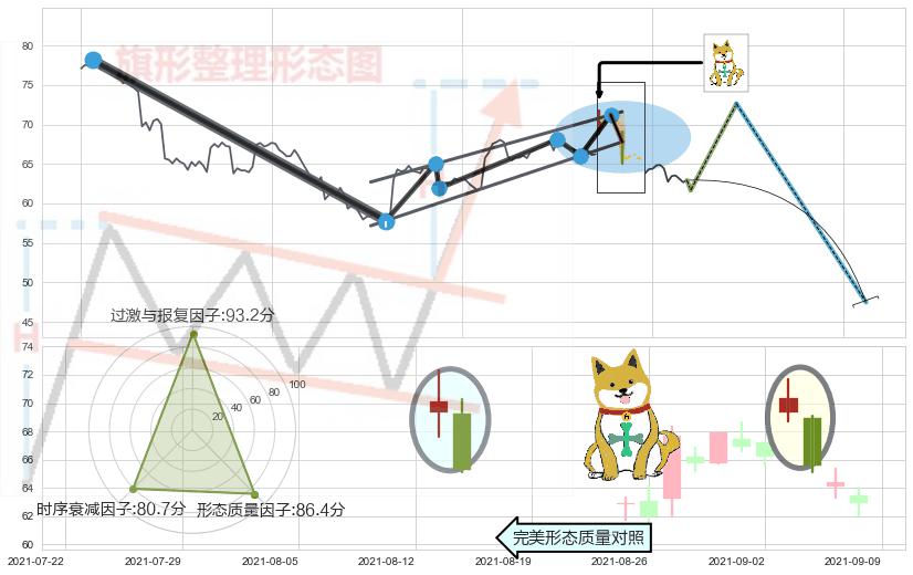 ➢ 下跌孤独十字星 🔜 升旗形支撑破位转换阻力下跌 综合量化分数:37.37 【偏空】