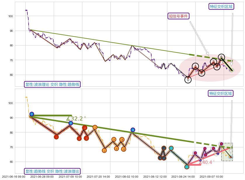 ➢ 2021-08-20 13:00-2021-09-09 12:00上升趋势存在反转[风险],其原上升趋势的支撑位(69.91)已破位[强阻力信号],原上升趋势角度: 40.4˚