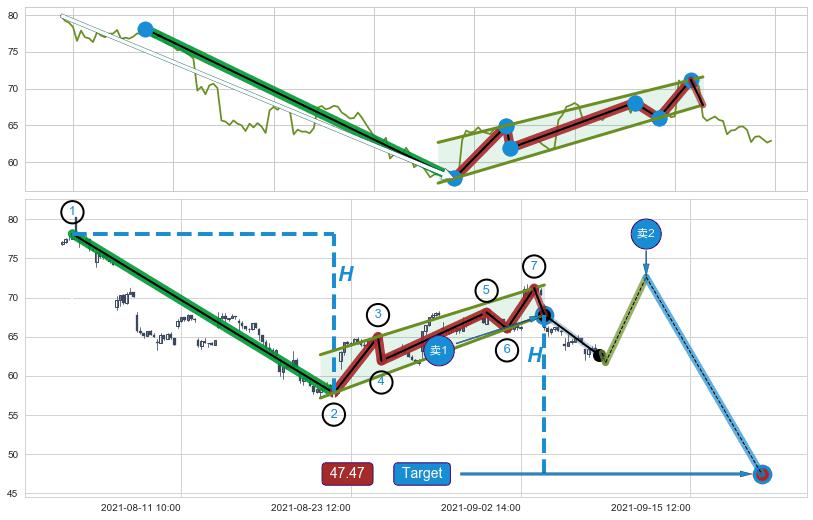 ➣ 最小中继整理跌幅→𝐇: 20.31 (𝐇旗杆的长度:旗杆起点→顶点)