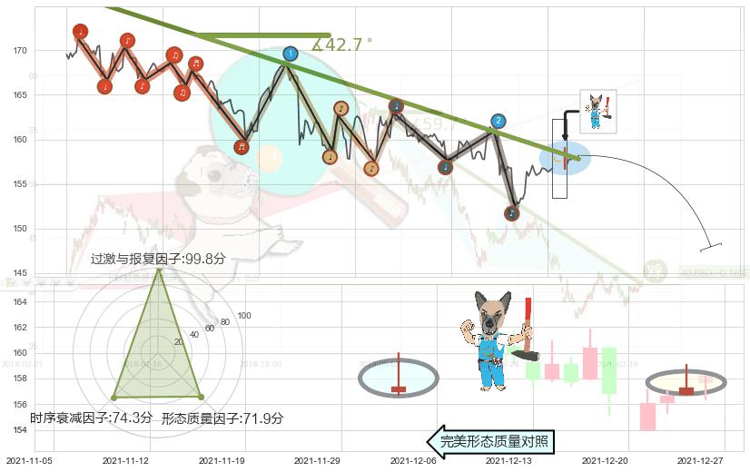 从2021-11-02 09:00至2021-12-27 14:00,共包含260个小时,阶段股价下跌-7.69%,阶段股价变动位移路程比: 1 : 13,下跌趋势角度: 42.7