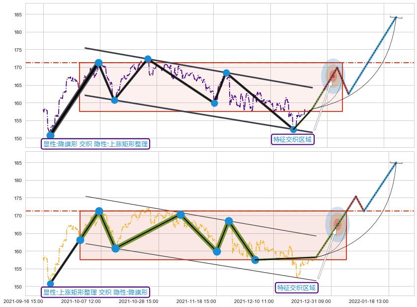 ➣ 上涨矩形整理:猜想临近关键阻力位突破点 → 临近拐点上涨 → 机会信号 → 大趋势均值回复
