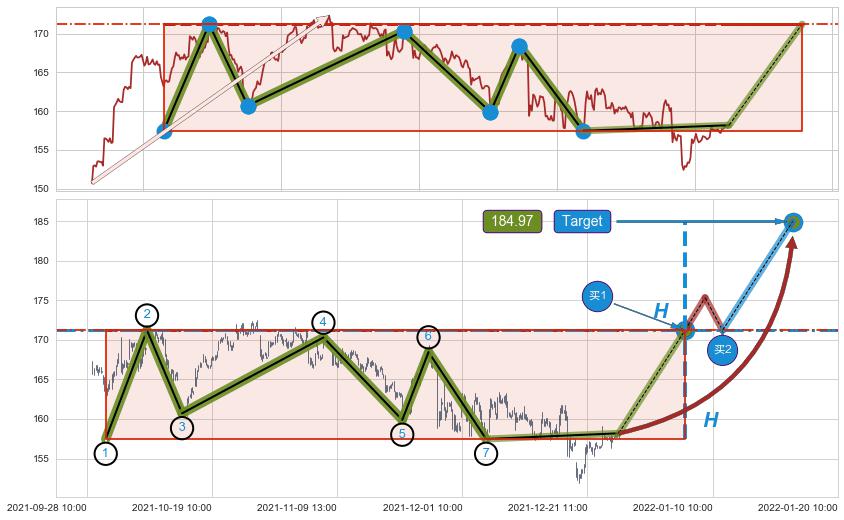 ➢ 【仅预测突破】最后价格:158.19与预测突破价格:171.22→【空间临近】后续最小【整理】第一目标价格→(01-20:10: 184.97 )