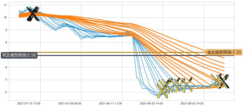 ➣ 180小时均线于(07-14 09:00: 10.31)形成【死叉】基于【死叉历史模型】预测死叉后最低波谷价格: 8.63, 死叉后最低价格3.620,已经下跌超出预测最低波谷价格, 预期反弹