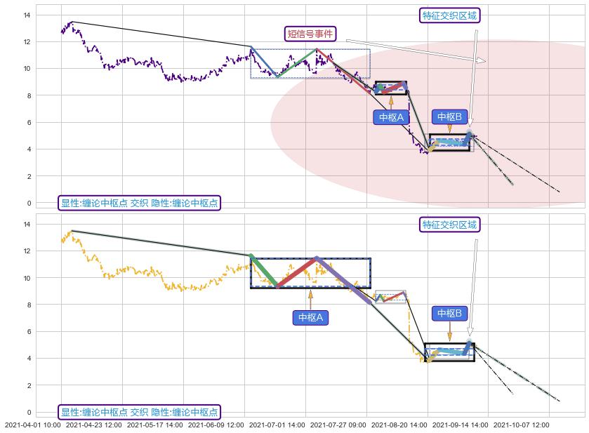 ➣ 缠论中枢点:猜想破位中枢B后持续下拉 → 下跌 → 破位中枢B支撑 → 持续趋势跟踪