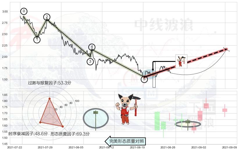 ➢ 中流砥柱形态 🔜 波浪理论下跌浪:浪5反弹拐点 综合量化分数:53.88 【偏多】