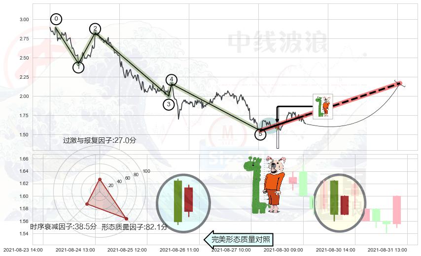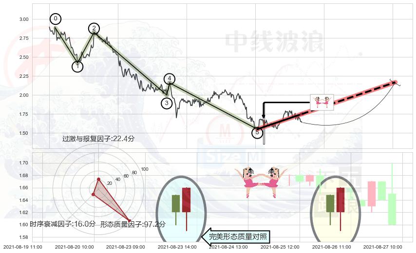 从2021-08-04 09:00至2021-08-09 14:00,共包含22个小时,阶段股价上涨11.17%,阶段股价变动位移路程比: 1 : 2