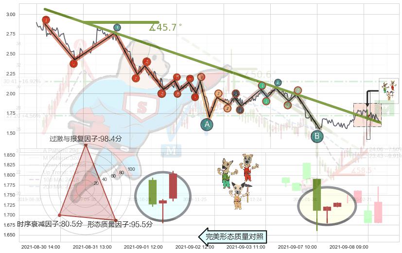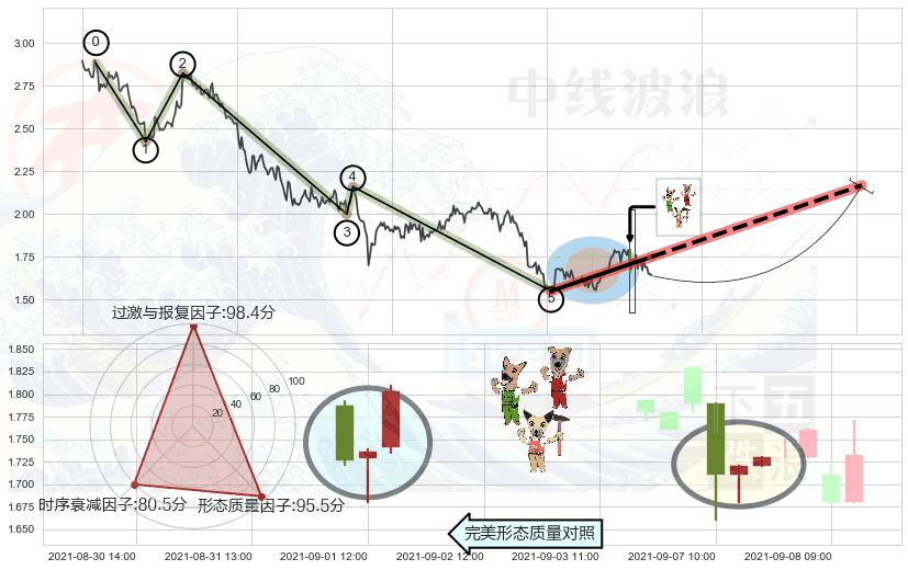 ➢ 🕰 价格走势在2021-09-07 00:00:00至2021-09-07 00:00:00期间形成单针探底(定海神针),残存影响值:7.37