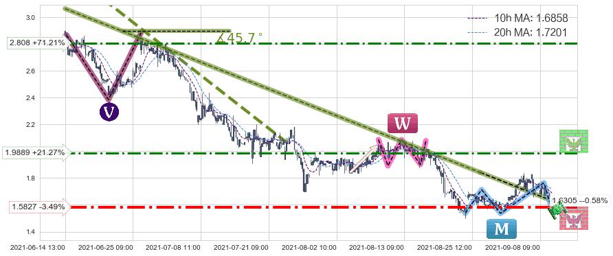 ➣ 【已达成】最小【整理】第一目标价格→(08-23:14: 1.5626 ), 后续继续【整理】下跌动力依然存在,下跌空间适中