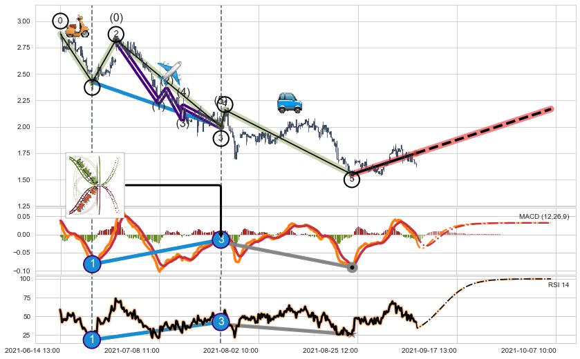 ➣ 波浪理论:猜想即将止跌 → 上涨 →【拐点】浪5临近 → 大趋势均值回复