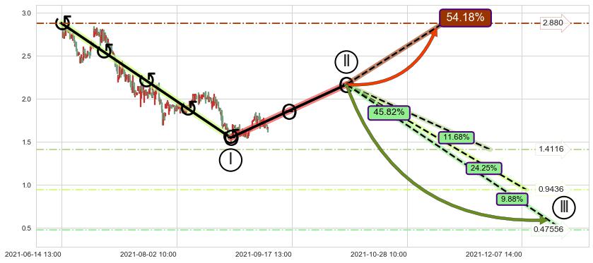➢ 循环浪继续向下【最低】位置(12-22:09, 0.47556),匹配聚类样本比例21.56%, 可能性概率9.88%