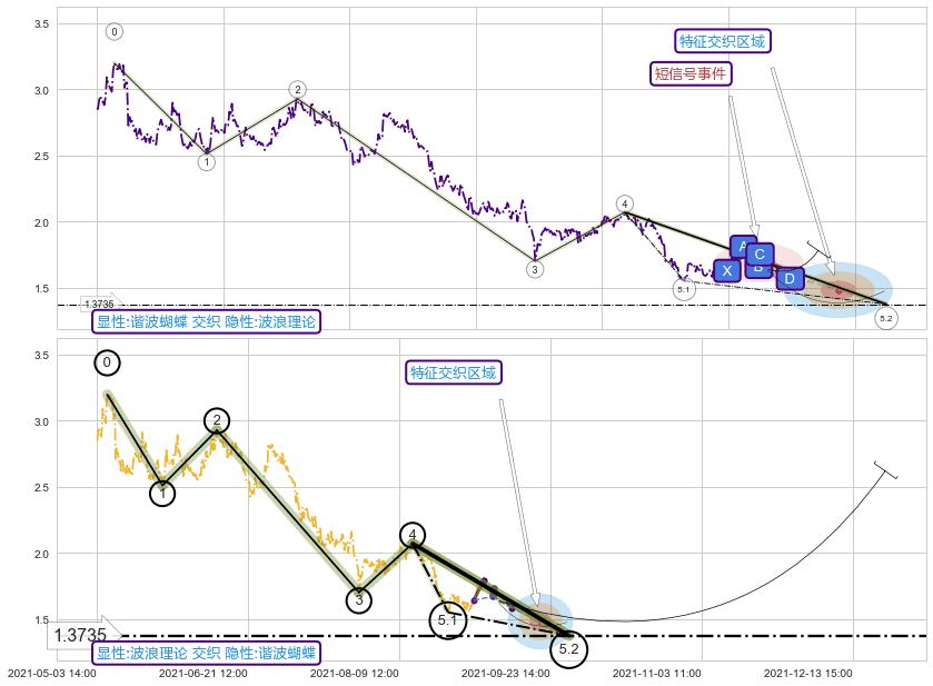 ➢ 谐波蝴蝶属【短级别信号事件】下降对称三角整理属【长级别信号事件】长短周期组合信号事件, 短长事件长度比8.60%