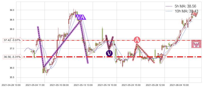 ♘ 支撑价格位37.42,可信任强度40.13%,距离最后交易2021-06-04 14:00形成的收盘价格38.61相差 -3.07%