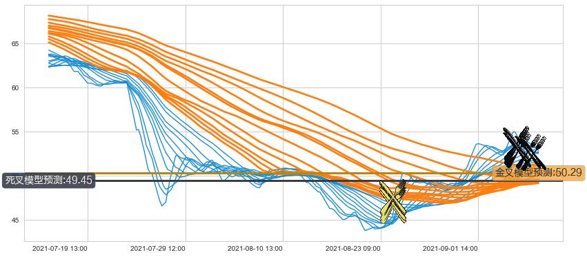 ➢ 70小时均线于(08-23 15:00: 47.31)形成【金叉】基于【金叉历史模型】预测金叉后最高波峰价格: 50.47, 金叉后最高价格55.06,已经上涨超出预测最高波峰价格, 预期回调