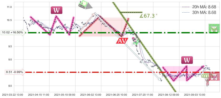 ♘ 阻力价格位10.02,可信任强度94.35%,距离最后交易2021-09-09 14:00形成的收盘价格8.60相差 +16.50%