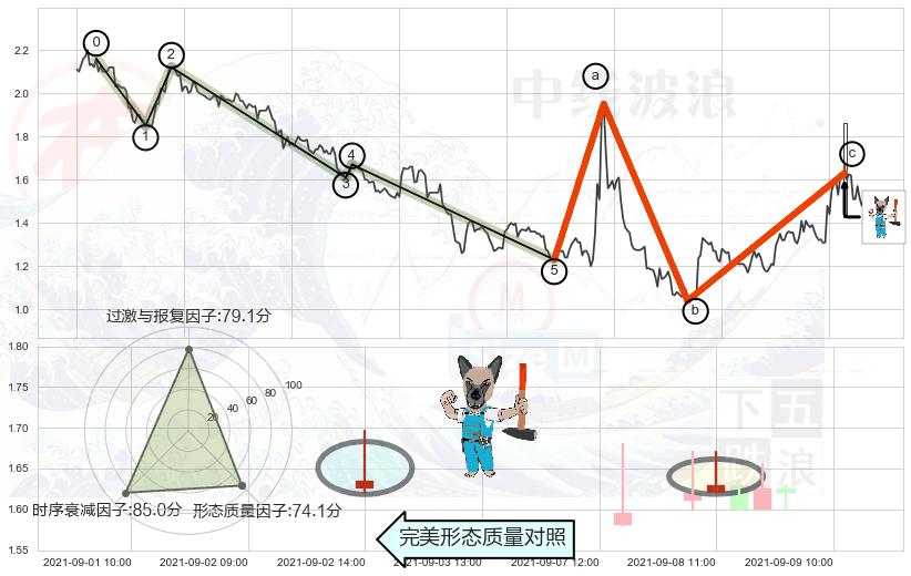 ➢ 🕰 价格走势在2021-09-09 13:00:00至2021-09-09 14:00:00期间形成双针探底,残存影响值:7.49