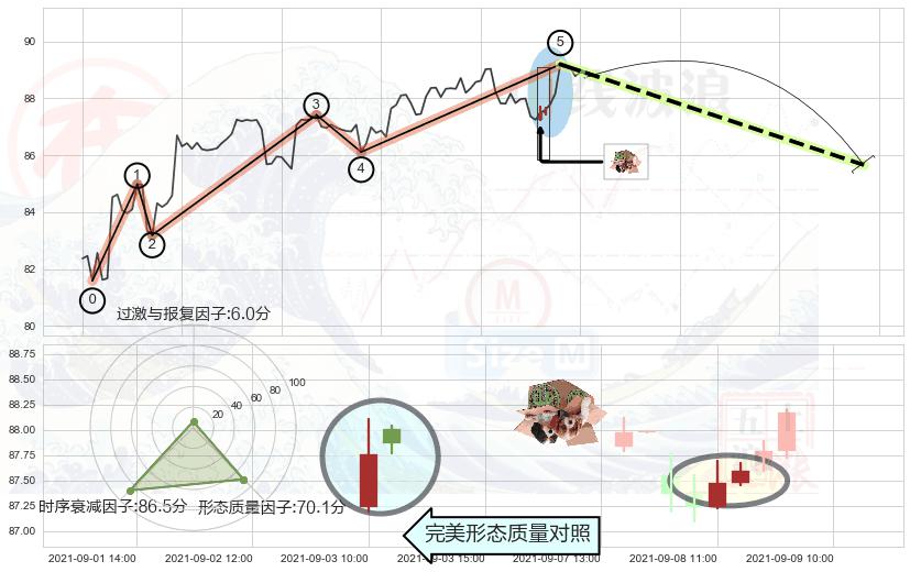 ➢ 循环浪继续向下【最高】位置(09-08:13, 81.47),匹配聚类样本比例33.84%, 可能性概率11.78%