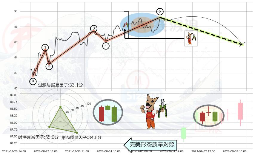 ➢ 🕰 价格走势在2021-09-08 11:00:00至2021-09-08 12:00:00期间形成顶部尽头线(下山虎),残存影响值:-3.26