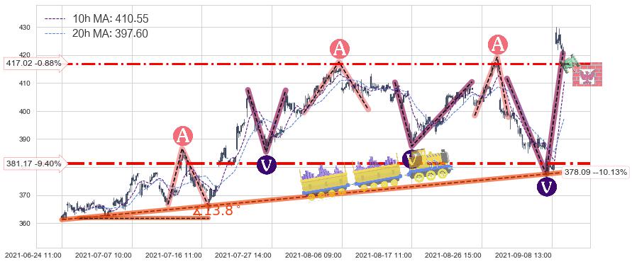 ♞ 10小时均线:410.55,20小时均线:397.60→ 快线>慢线