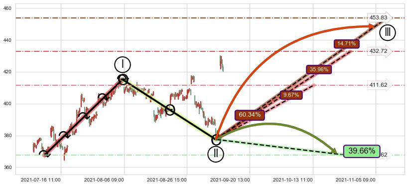 ➣ 循环浪继续向上【平均值】位置(10-27:11, 432.72),匹配聚类样本比例59.60%, 可能性概率35.96%