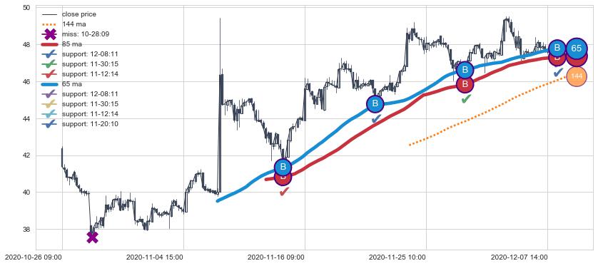 ➢ 最优均线组合共正确确认支撑阻力信号7处,正确确认率 58.33%