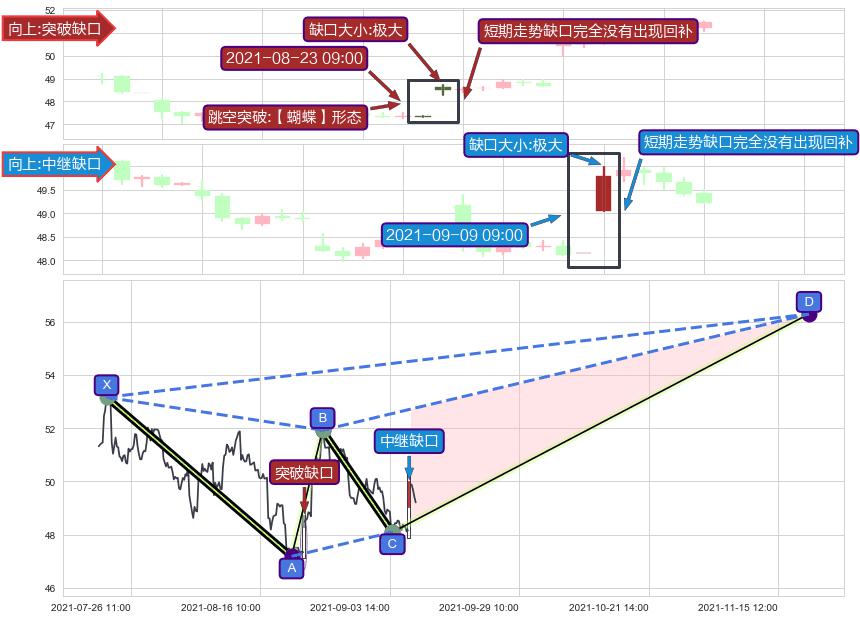 ➢ 【蝴蝶】形态 🔜 中继缺口 🔜 突破缺口 综合量化分数:54.87 【偏多】