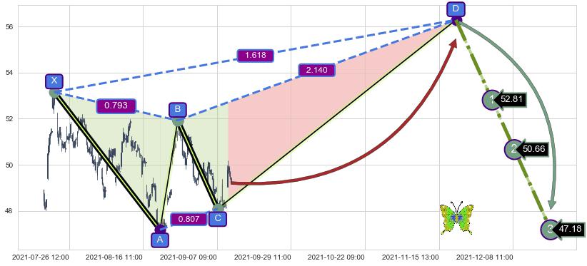 ➣ 未完成【蝴蝶】形态起点X: 07-21:11, 已到达C点: 09-07:10, 预测最终D点: 11-19:12, 共540交易小时