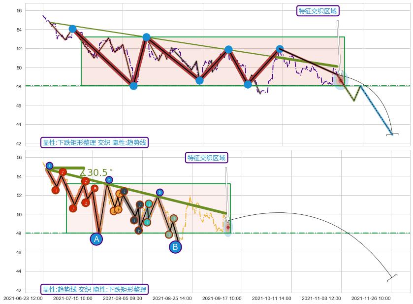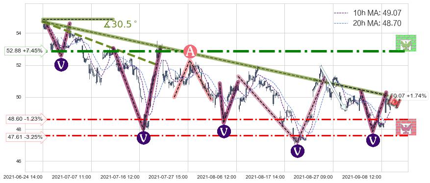 ➣ 预测:2021-10-27 12:00,【试探阻力】稳定目前下跌趋势的前提下,预测价格:47.45