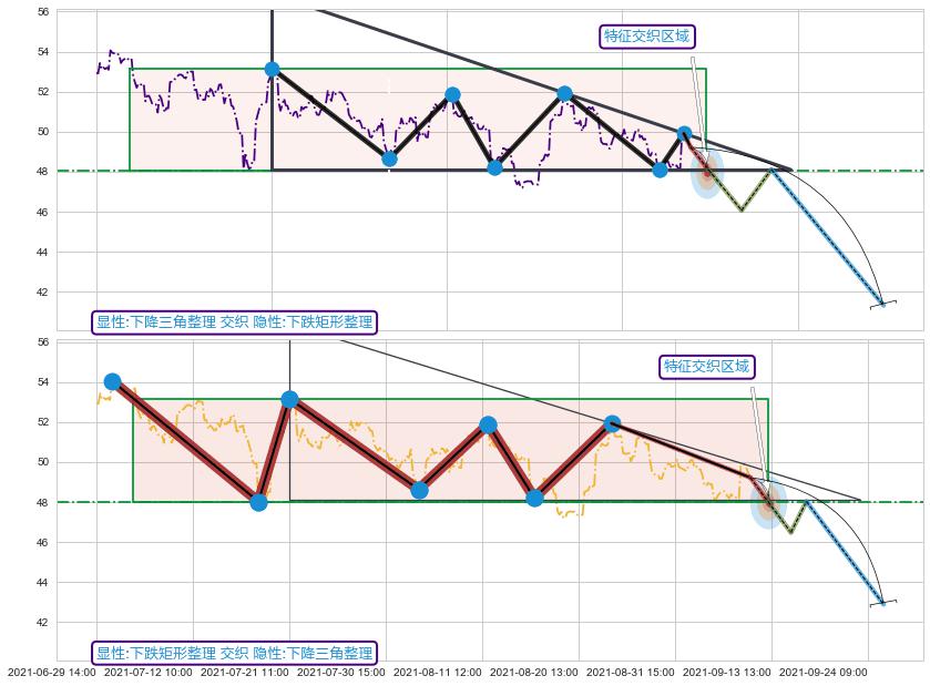 ♘ 在最后的下跌阶段2021-06-24 14:00至2021-08-24 11:00,存在 持续未破位的阻力位 ,阻力价格50.07,可信任强度80.60%,其距离最后价格49.21相差 +1.74%