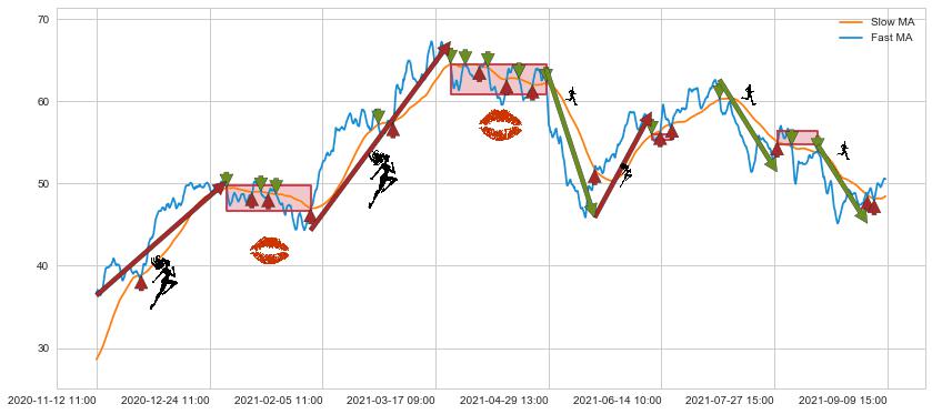 03-22 15:00至04-29 09:00 慢线与快线多次接触,存在上下穿越,有缠绕