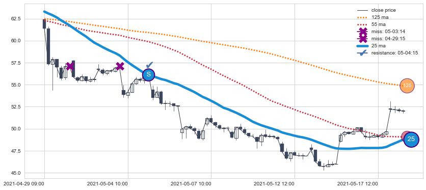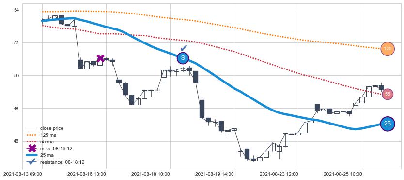 ➣ 25小时均线于(08-23 14:00: 47.33)形成【金叉】基于【金叉历史模型】预测金叉后最高波峰价格: 49.30, 金叉后最高价格50.85,已经上涨超出预测最高波峰价格, 预期回调