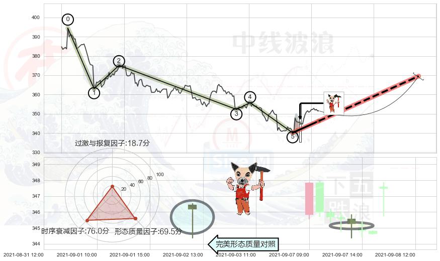 ➢ 曙光初现形态 🔜 波浪理论下跌浪:浪5反弹拐点 综合量化分数:53.87 【偏多】