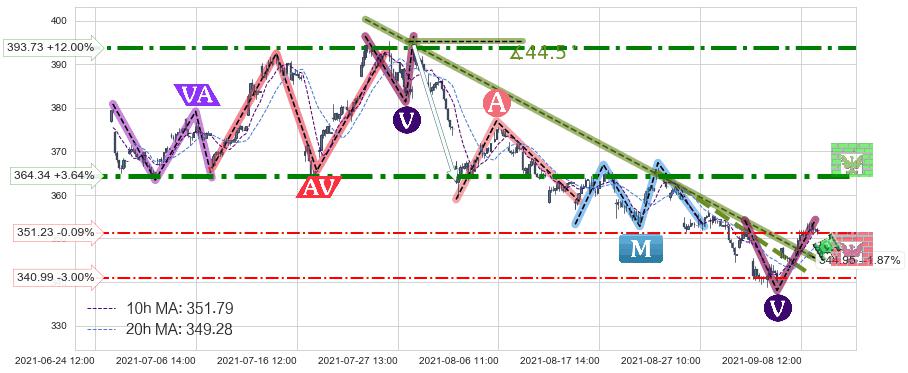 ♘ 阻力价格位364.34,可信任强度94.73%,距离最后交易2021-09-09 15:00形成的收盘价格351.53相差 +3.64%