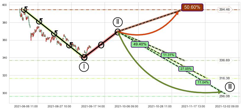 ➢ 高概率大级别循环下跌浪被破坏,反转向上(突破5浪起点)概率50.60%