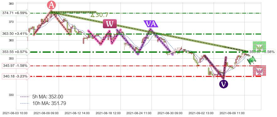 ➢ 预测:2021-09-10 13:00,【小幅反弹】稳定目前下跌趋势的前提下,预测价格:352.89