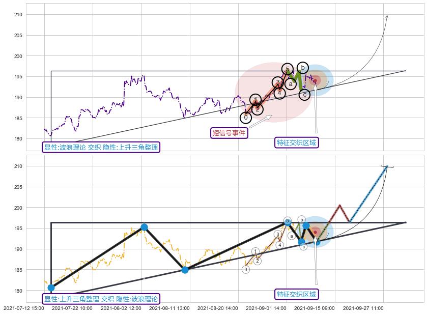➢ 波浪理论属【短级别信号事件】上升三角整理属【长级别信号事件】长短周期组合信号事件, 短长事件长度比21.09%